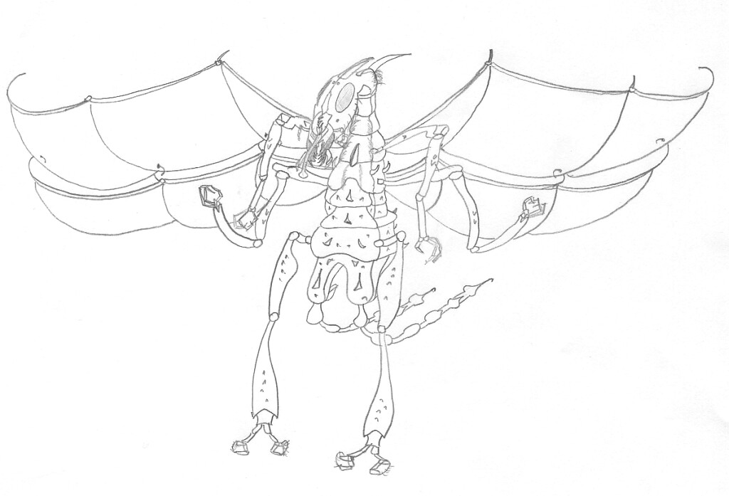 A première vue, il s'agit d'une créature insectoïde, mais de nombreux détails viennent contredire cette impression. Le plus évident est la forme des ailes, rappelant celles d'une chauve-souris. Mais la structure de ces ailes est en même temps rigoureusement identique à celle d'un insecte. En outre, il dispose de quatre griffes par ailes, toutes parfaitement adaptés à leur fonction: lacérer ses victimes. Une autre anomalie flagrante est l'absence de métathorax et l'insertion des pattes P3 sur le troisième métamère abdominal. Ce qui laisse un thorax de seulement deux métamères portant chacun une paire d'aile et une paire de pattes. Ce qui pose la question: Et si c'était en fait le prothorax qui avait disparu? Mais cette solution impliquerait un glissement de la position des trois paires de pattes le long du corps de la chose, ce qui est impossible biologiquement. Cette hypothèse attrayante est donc finalement rejeté. L'impossibilité d'études embryologiques nous fait hélas penser que ce problème ne sera jamais élucidé. On peut toutefois conjecturé que la position très en arrière de l'insertion des P3 favorise l'équilibre de l'organisme et l'a aidé à se cacher dans un déguisement humain.